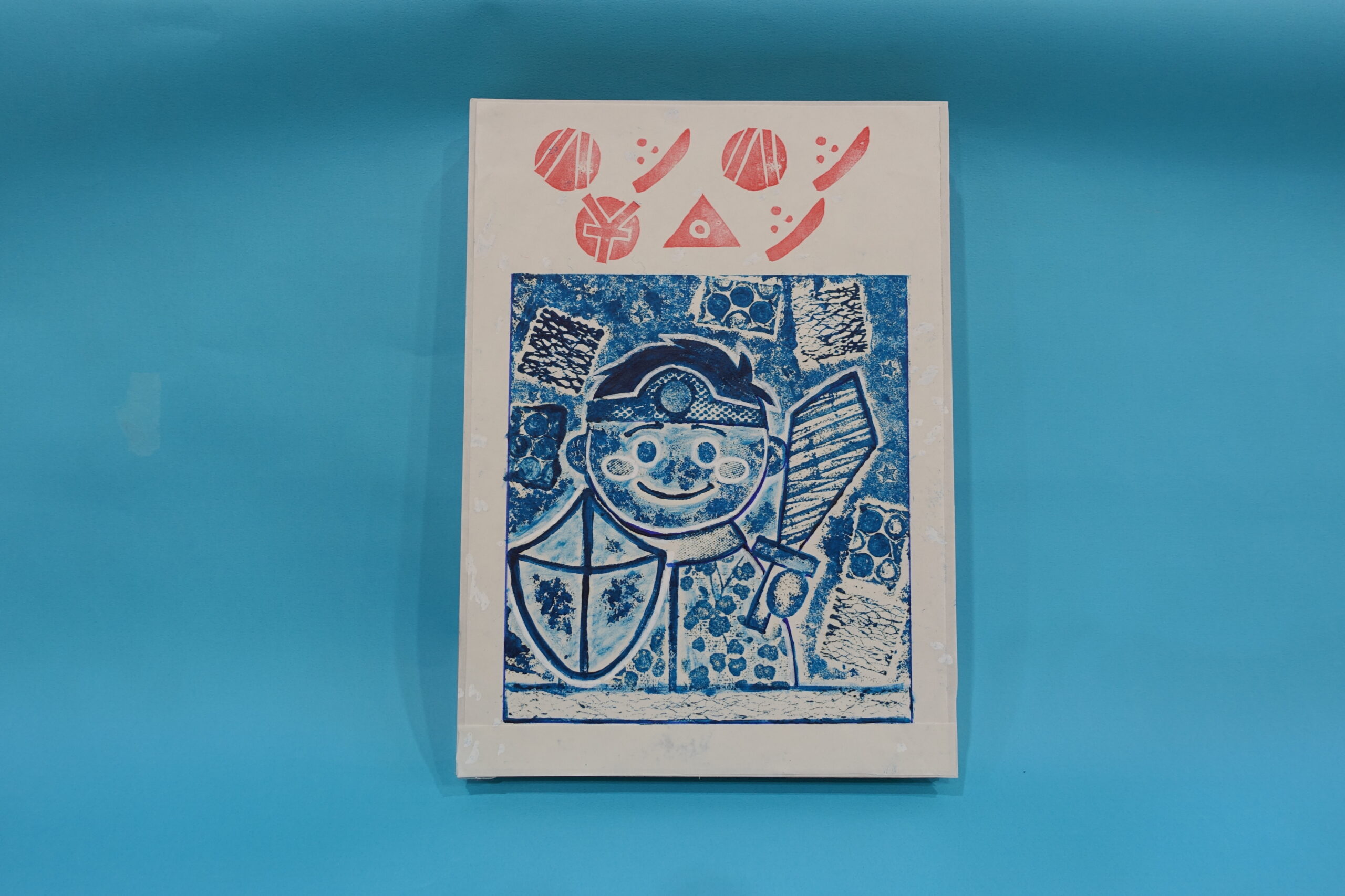 いろんな紙を切り貼りして「版」を作り、足でふみふみして刷ります。