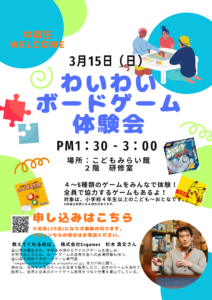 3/15(日)わいわいボードゲーム体験会参加者募集のお知らせ