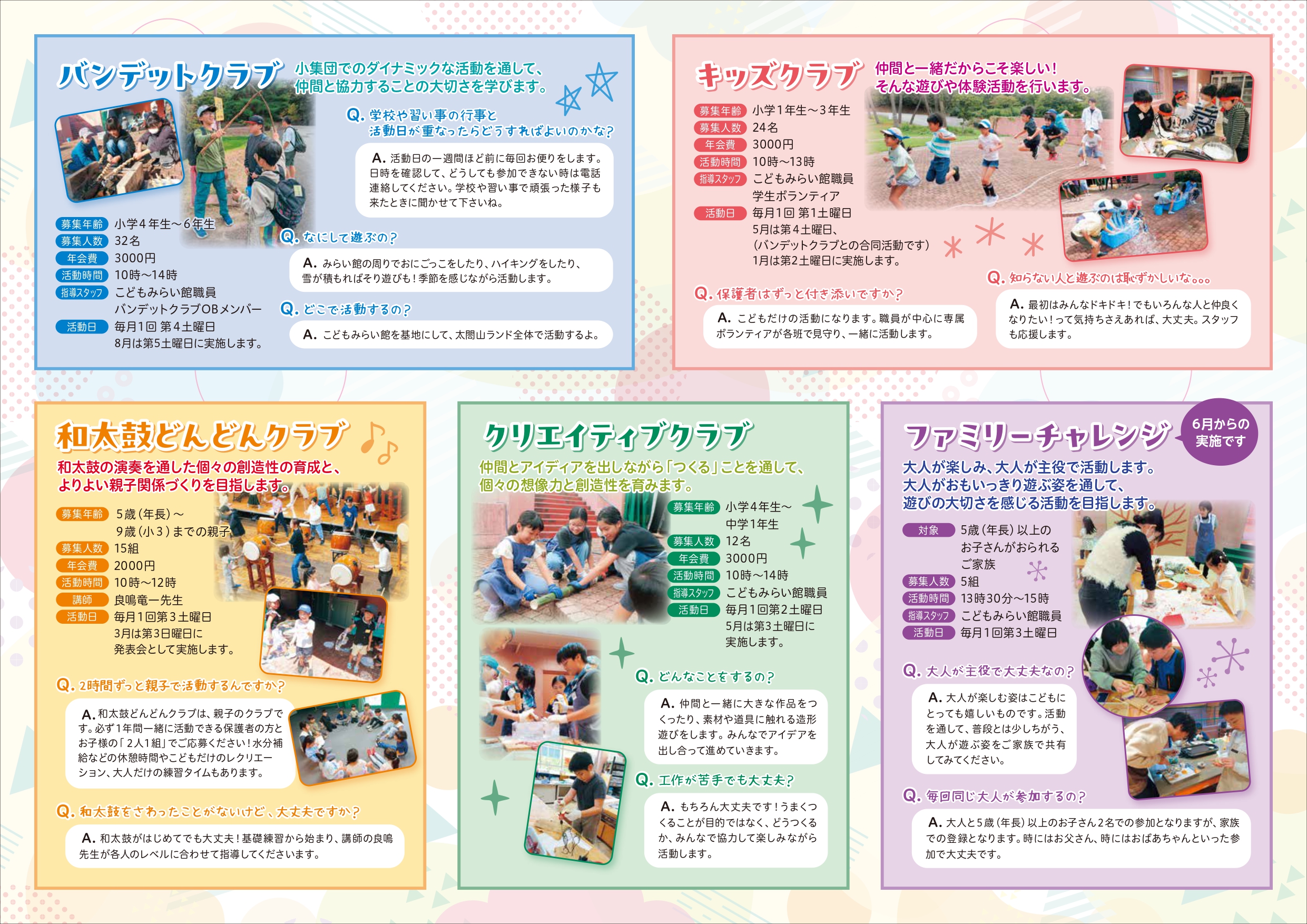 ※年会費は傷害保険料、食材費、クラフト材料費を含みます。活動内容に応じて別途実費を徴収する場合があります。